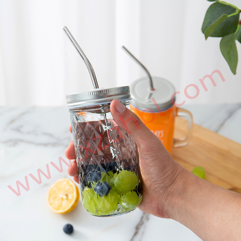 10 盎司 300 毫升透明玻璃苏打瓶带盖和吸管批发